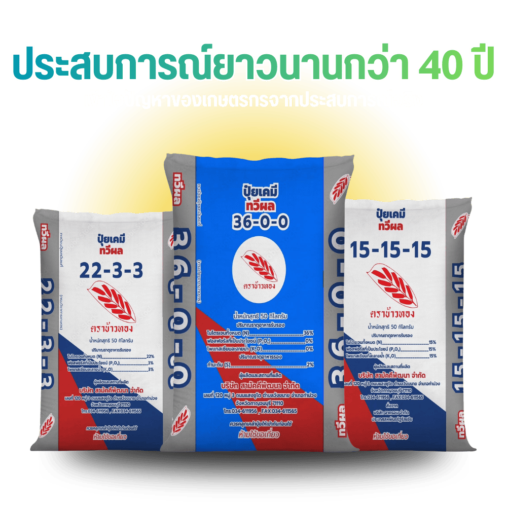 ผู้ผลิตและจัดจำหน่ายปุ๋ยเคมีคุณภาพมามากกว่า 40 ปี ดำเนินธุรกิจด้านปุ๋ยเคมี สารปรับปรุงดิน และรับผลิตปุ๋ย OEM แบบครบวงจร